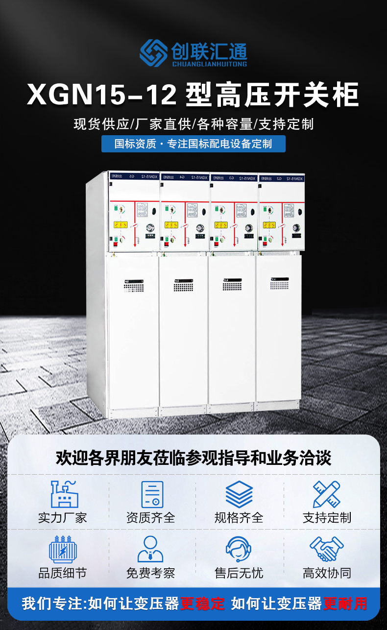 XGN2-10箱型固定式金屬封閉開關設備用于12kV及以下三相交流50Hz系統中作為接受與分配電能之用,特別適合于頻繁操作的場合,其母線系統為單母線,也可派生出單母線帶旁路和雙母線結構。           XGN2-10(G)箱型固定式交流金屬封閉開關設備是在普通型開關柜基礎上已派生的適合高海拔地區使用的高原型產品。