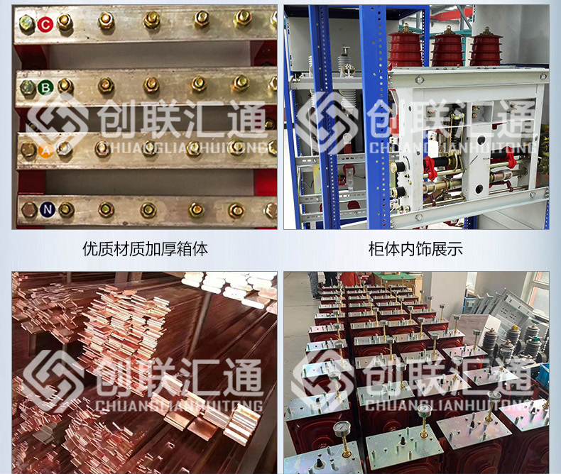 用于環網供電或雙電源輻射供電系統中,作為電能的控制和保護裝置,亦可裝入箱式變電站中。該設備主回路所選用的主要元件為專門為該開關柜開發的ZN100-12型真空斷路器、FZN-12型真空負荷開關、FZNR-12型負荷開關-熔斷器組合電器等。