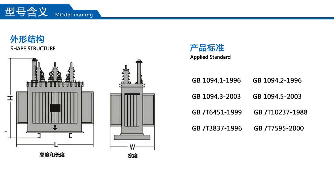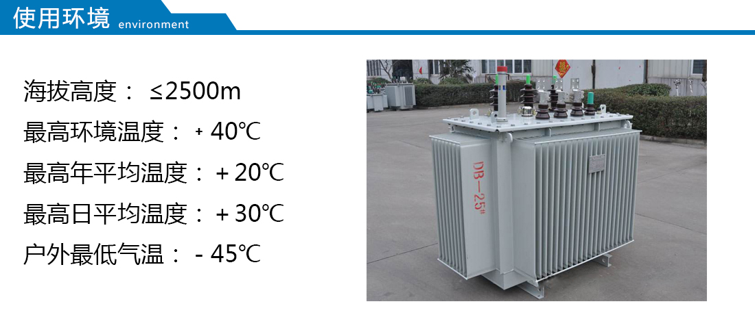 此類產品適用于交流50(60)Hz,三相最大額定容量2500kVA(單相最大額定容量833kVA,一般不推薦使用單相變壓器),可在戶內(外)使用,容量在315kVA 及以下時可安裝在桿上,環境溫度不高于40℃,不低于-25℃,最高日平均溫度30℃,最高年平均溫度20℃,相對濕度不超過90%(環境溫度25℃),海拔高度不超過1000m。